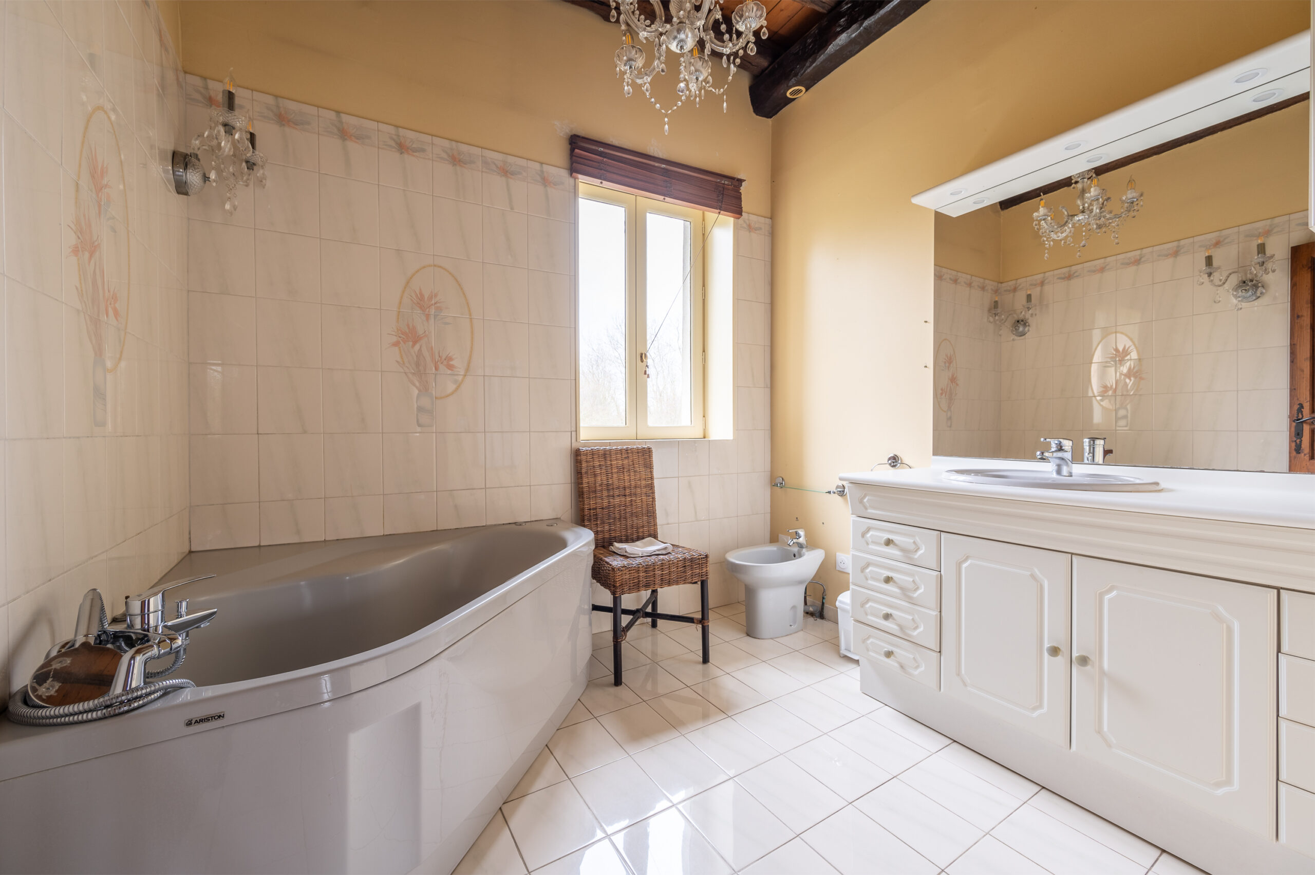 1 salle de bain avec baignoire, lavabo et 1 bidet